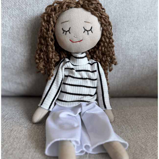 Así nació Conociendo a Mamá, acompañado de muñequitas hechas a mano que representan a la mamá protagonista. Más que un accesorio, la muñequita puede convertirse en un objeto de apego para que los niños sientan a mamá cerquita siempre, incluso cuando no está físicamente a su lado.