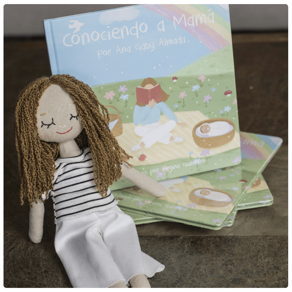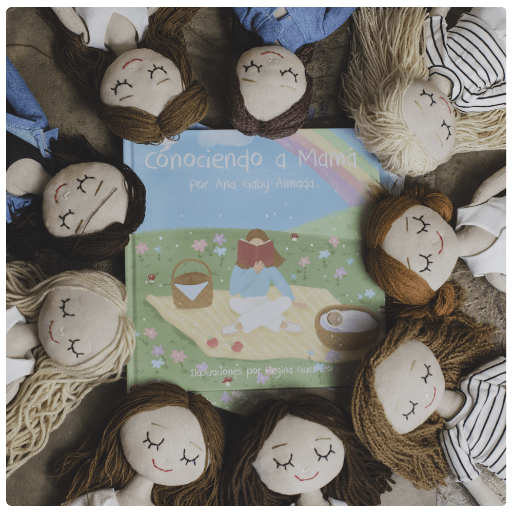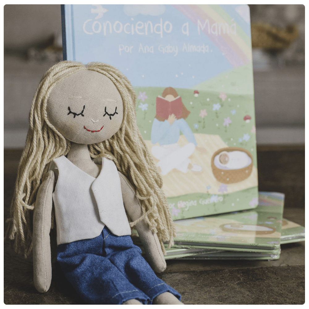 Incluye el libro Conociendo a Mamá, un cuento ilustrado y personalizado que revive los momentos más especiales de la infancia de mamá, y una muñequita hecha a mano que la representa de niña, para que la historia cobre vida en cada lectura.
